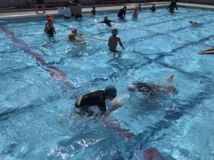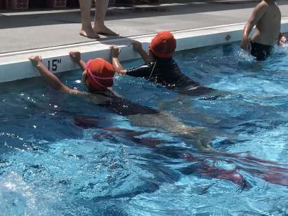 水泳が無事終わりました。今年度はお天気に恵まれ、5回とも気持ちよく水泳に取り組むことができました。最後の学習では、練習の後に1から4年生対5・6年生で宝探しをしました。今年度の水泳を振り返ってプール納めをしました。