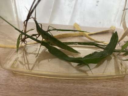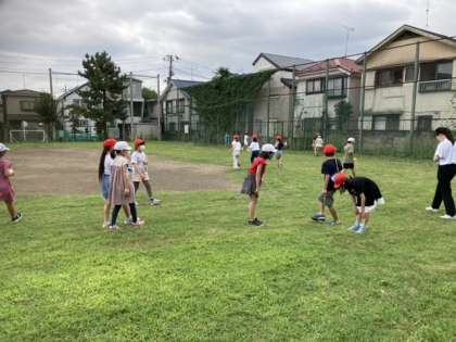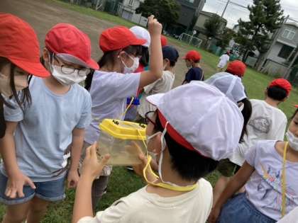 キアゲハ、アオスジアゲハ、シジミチョウ、シオカラトンボ、アキアカネ、ショウリョウバッタ、カエル、ダンゴムシなど、たくさんの生き物を見付けました。中でも、バッタは教室で飼おうと4匹虫かごに入れてきました。大切に育てていきます。