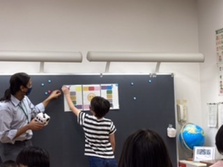 9/15 外国語活動 くすのき学級 公開日 2022/09/15 更新日 2022/09/15 できごと 今日は双六ゲームをやりました。 サイコロを振って駒を動かし、止まった所で「I like (色).」と発音しました。 楽しく英語に親しんでいます。 いいね(0)