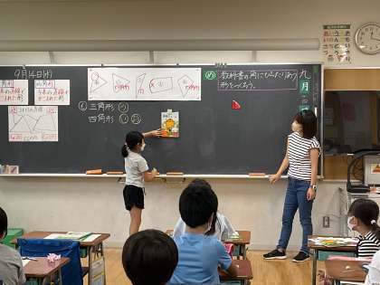 9/20 直角さがし 2年生 公開日 2022/09/20 更新日 2022/09/20 できごと 算数「三角形と四角形」で、直角探しをしました。 まず、自分の好きな形に切り取った折り紙を、折って直角をつくりました。 一人一人形が違っても折って作った角が、教科書の角にピッタリ合う直角になったことに驚いていました。他にも直角が当てはまるものはないかなと、関心が広がりました。 いいね(0)