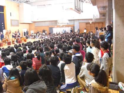 和太鼓の力強い音が体育館中に響き渡ります。