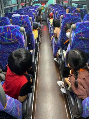 バスに乗り込み、出発です。 今日は天気が良いので、公園で気持ちよく遊べそうです。