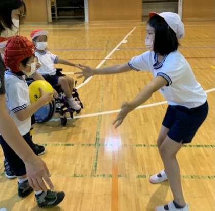 ボールを持つと、「1、2、3…」とカウントが入り、その間に味方の友達にパスをします。