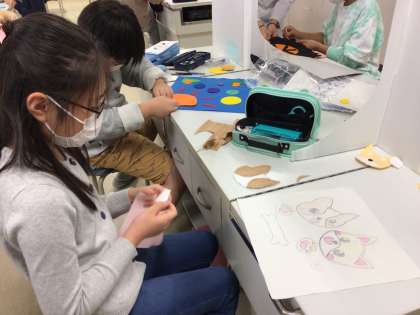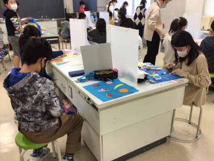 縫い方を生地に書き込んだり、ボタン付けにチャレンジしたりして、生活に役立つクッションを作っています。