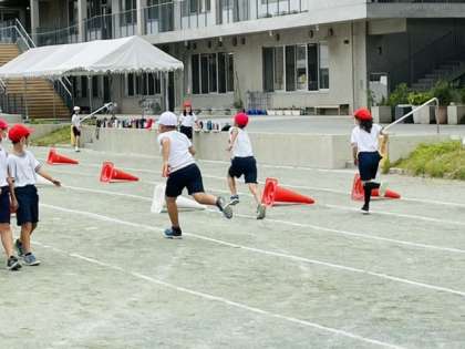 校庭での体育では、ハードル走や鉄棒に取り組んでいます。