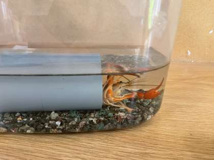 ザリガニと一緒に楽しく過ごしています。