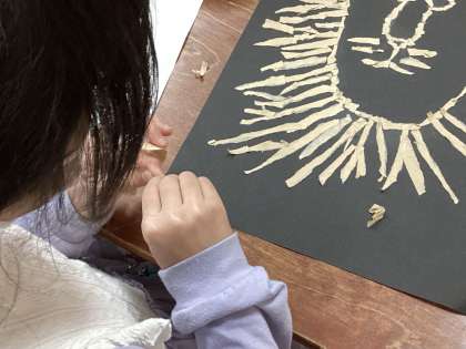10/18 どうぶつさんといっしょに 2年生 公開日 2022/10/18 更新日 2022/10/18 できごと 紙ガムテープを小さくちぎって貼り付け、ライオンを描いています。 終わった人は額縁づくり。金色のシートの外側にいろんな模様を描いていきました。 組み合わさると、どんな作品が出来上がるのか楽しみです。 いいね(0)