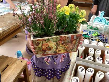 最後に、植物のお手入れの仕方も教えてもらい、子供たちは満足気に鉢植えを持ち帰りました。