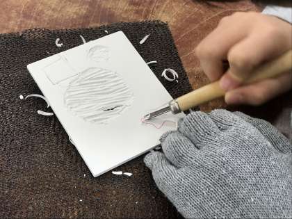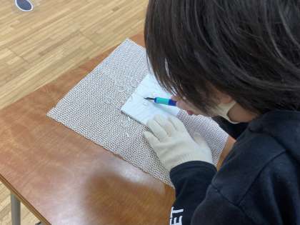 4、5、6年生の図工の学習では、版画でのカレンダー作りに向けて彫刻刀の練習をしています。「いつもよりさらに真剣に、集中して取り組むこと」「絶対に刃の前に手を出さないこと」を確認して作業に取り組みました。三角刀で細い線を、小丸刀や中丸刀で少し太い線を彫りました。4年生は初めての彫刻刀にドキドキしながらも一生懸命取り組んでいました。5、6年生は昨年度の経験を活かして一人で作業を進めることができました。