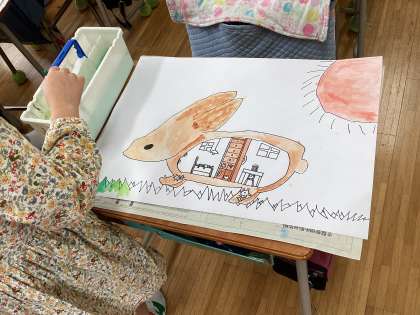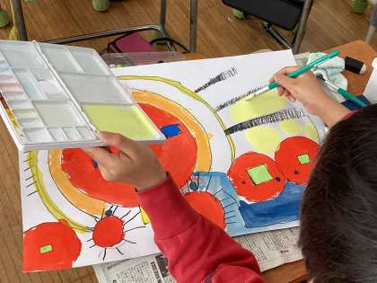 10/27 ふしぎなのりもの(図工)3年生 公開日 2022/10/27 更新日 2022/10/27 できごと 不思議な乗り物を想像して描いています。 生き物の中に人がいたり、物があったり、乗り物の操縦席があったり、子供たちの想像力は豊かです。 絵の具での色使いも工夫していて、作品が仕上がってきています。 いいね(0)