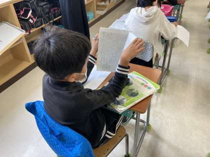 まとめるとき、自分のノートを参考にしている子が多くいました。これまで学習したことをしっかりノートに記録したことで、まとめに活用できました。