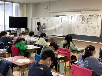 11/1 言葉の貯金箱 6年生 公開日 2022/11/01 更新日 2022/11/01 できごと 6年生の国語の様子です。 「『鳥獣戯画』を読む」では、文章と図表などを結び付けながら、筆者の「書きぶり」を読み取ったり、論の進め方を考えたりする力を高めることを目指しています。 今日は、筆者の絵を見る視点や褒める言葉を読み取り、言葉の貯金箱にまとめました。 いいね(0)