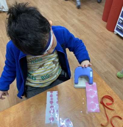 リボンを通して完成すると「お母さん、お父さんにあげたいな。」と嬉しそうに話してました。