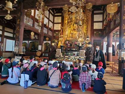 浄真寺の歴史について学びました。子供たち、建物の貫禄に驚いています。