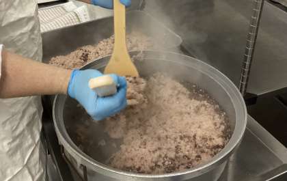 11月21日は松沢小学校の開校記念日です。日本には、赤い色には病気や災いを払う力があるとされ、昔から特別な日にはお赤飯を食べる習わしがあります。給食でもお祝いの気持ちを込めてお赤飯を炊きました。