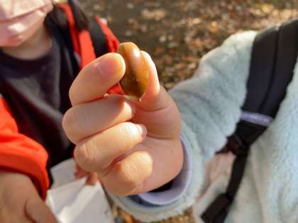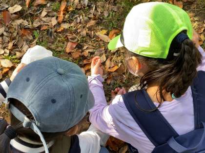 玉川上水第三公園で、早速、秋探しを開始。子供たちはドングリや落ち葉を拾っています。