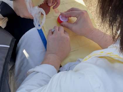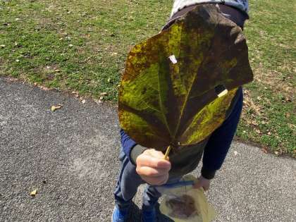 秋探しグループでは、探した秋の自然をもとに、秋ビンゴをしました。まるいもの、茶色のもと、ギザギザのもの、ころがるもの・・・。いろんな色や形の秋を見つけていました。