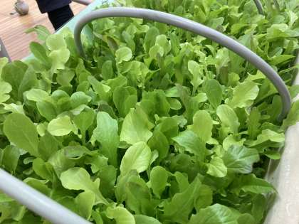 リーフレタスが虫に食べられてしまったので、再チャレンジしてようやくここまで生長しました。レタスが大きくなったので、みんなで喜びました。