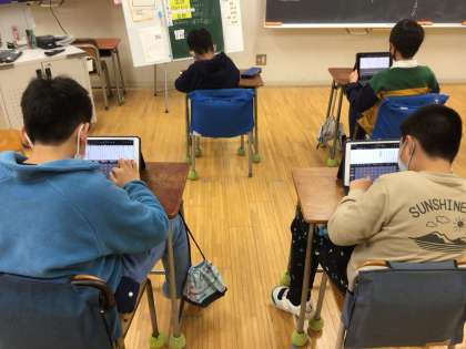 12/6 スピーチ・作文活動 くすのき学級 公開日 2022/12/06 更新日 2022/12/06 できごと 週明けには、休日の出来事についてスピーチ・作文活動に取り組んでいます。スピーチをして内容をまとめてから作文活動に取り組む人もいれば、作文に書き起こしてからスピーチをする人もいます。また、原稿用紙で書く人もいれば、タブレット端末で書く人もいます。それぞれに合った形で取り組み、休日について詳しく友達に伝えることができるように頑張っています。 いいね(0)