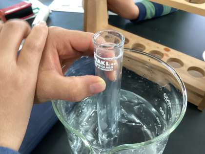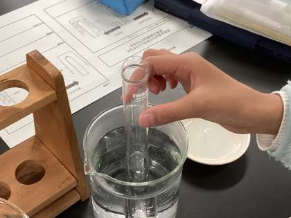 12/12 空気の体積はどうなるの? 4年生 公開日 2022/12/12 更新日 2022/12/12 できごと 「空気を温めたり冷やしたりすると物の体積はどのように変化するのか」 予想→実験→考察の流れで学習を進めていきました。 試験管の上に洗剤の膜を張り、試験管を温めます。膜はどのように変化するのか。 同様に試験管を冷やすと膜はどうなるのか。 子供たちは安全に気をつけながら実験を行い、膜の変化に驚きと興味をもっていました。 いいね(0)
