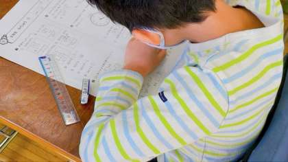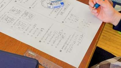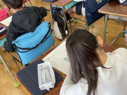 算数では、2学期の復習として、プリントに取り組んでいます。