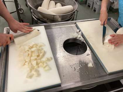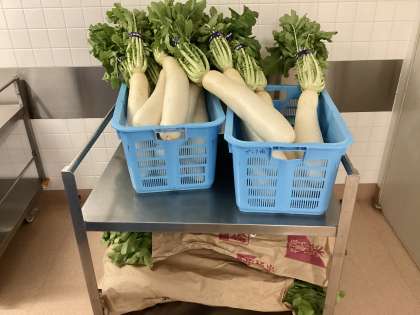 区内の農家から届いた新鮮な大蔵大根は、世田谷オリジナルメニューの「大根カレー」になります。