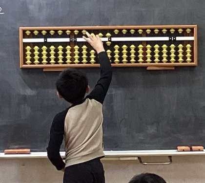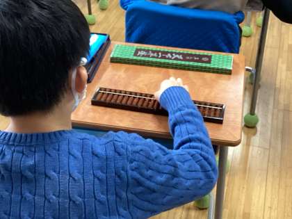 子供たちは問題に取り組み、そろばんの玉を動かしながら、そろばんの計算の仕組みを理解しようと頑張っていました。