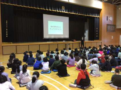 1/10 学年集会 3年生 公開日 2023/01/10 更新日 2023/01/10 できごと 3学期始めの学年集会をしました。 3学期の学習予定や、4年生への心構えなどについて、全員で確認しました。 4年生から始まる「クラブ活動」についての話では、今からわくわくした様子で、子供たちの顔には笑顔が溢れていました。 いいね(0)