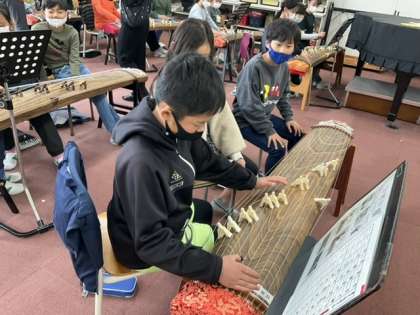 1/13 和の心2 4年生 公開日 2023/01/13 更新日 2023/01/13 できごと いよいよ筝の練習です。 姿勢や力加減に気を付けて 弦を弾いていきました。 緊張と慣れない姿勢に 終わった後に体のあちこちが 痛くなったそうです。 いいね(0)
