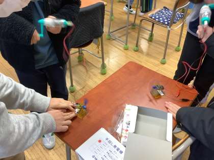 1/16 理科 電気と私たちの生活 6年生 公開日 2023/01/16 更新日 2023/01/16 できごと 身近に存在する電気がどのように作られて、どのように使われているか考えました。 水力、火力、風力、原子力発電のどれもが発電機を回して発電していることを知りました。 手回し発電機を用いて、実際に発電してモーターを回したり、電子オルゴールを鳴らしたりしました。 いいね(0)
