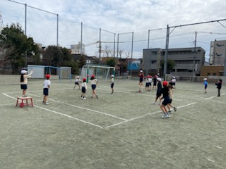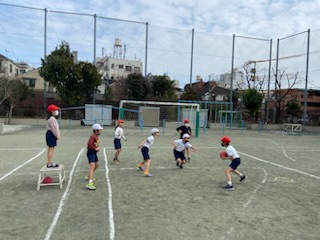 どうすれば相手にボールを取られずにパスができるのか、パスの種類やコースを工夫しながらゲームをすることができました。