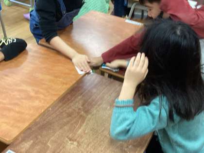 1年生で学習した「平仮名」と「片仮名」の両方が記載された「かるた」を使って、ルールをしっかり守りながら、「かるた遊び」を楽しんですることができました。
