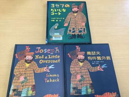 「ヨセフの大事なコート」という絵本は、日本語だけでなく、英語と中国語で書かれた物もあります。(写真の2枚目です。)