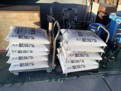 1/25 寒波への備え 公開日 2023/01/25 更新日 2023/01/25 できごと 寒波の影響により、今朝は氷点下になったようです。 今朝、見回りを行っていると、ビオトープの水が凍っていました。 (下の写真は万が一の雪や凍結に備えて準備をしていた塩化カルシウムです。) 今日は、日中も寒いようです。学校公開に来られる際は暖かくしてお越しください。 いいね(0)