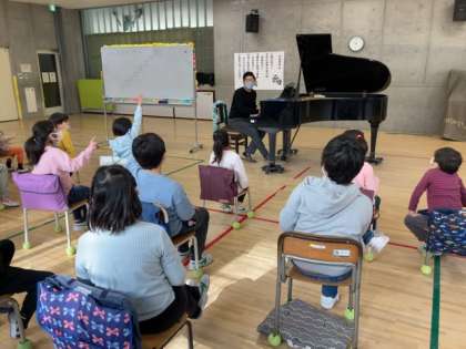 1/26 音楽 くすのき学級 公開日 2023/01/26 更新日 2023/01/26 できごと 今日は、以前松沢小で音楽の講師をしていた野口先生をお招きして、楽しいひとときを過ごしました。くすのきのみんなで「ゆかいな木琴」を演奏し、野口先生に聞いてもらいました。その後、音楽には、速さ(速い遅い)や大きさ(大きい小さい)、音の高さ(高い低い)があり、マリオの曲を使って分かりやすくピアノを弾きながら教えていただきました。 いいね(0)