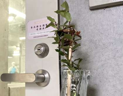 給食室入口にも「やいかがし」を飾って、無病息災を祈ります。