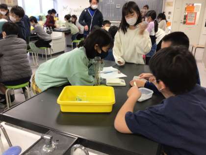 全体の重さは、とかす前ととかした後では変わらないことを確かめました。