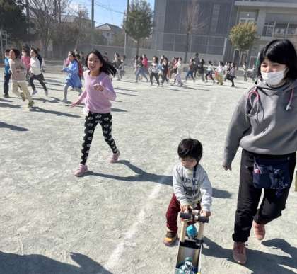 中休みになると、校庭に出て4分間走り続けます。
