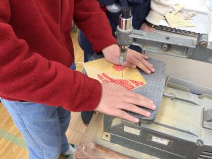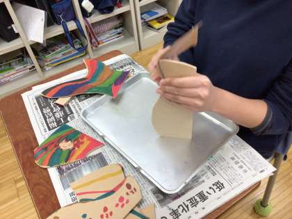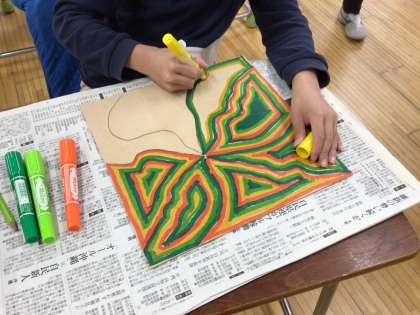 図工では木の工作に取り組みました。1枚の木の板に絵や模様を描き、6枚から8枚に切り分けました。4・5・6年生は自分で糸鋸で切りました。切り終わったらすぐに電源を切ること、刃の前に手を出さないことに気をつけて取り組むことができました。