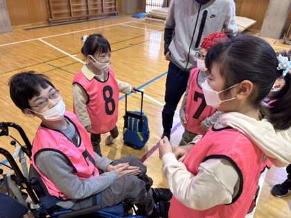 点数を取ることができると「やったー。」と喜び、打ったボールを取られると「ドンマイ。」と声を掛け合っていました。