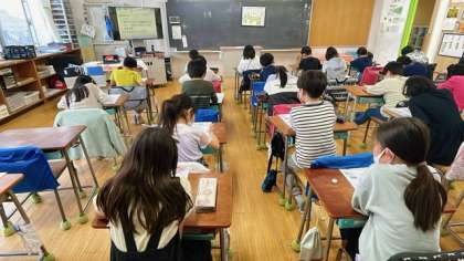一人一人がノートやポスター、タブレット端末などを使って学習をまとめています。