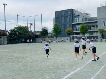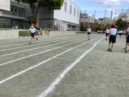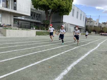 4年生では、鬼ごっこをした後、50メートル走のタイムを測定しました。