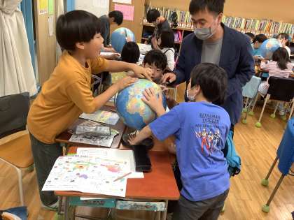 4/19 地球犠 5年生 公開日 2023/04/19 更新日 2023/04/19 できごと 地球儀の見方・使い方を学んでいます。 位置を調べたり、距離や方位を調べたり・・・。 緯度、経度、赤道などお理解しました。 いいね(0)