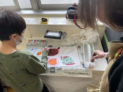 図工の学習でくすのきの葉っぱを作りました。クレヨンを使い、4つの葉っぱにそれぞれ違う模様を描きました。水玉や波線などカラフルな葉を作りました。クレヨンで描いた上から絵の具で葉を塗り、素敵な葉っぱに仕上げることができました。