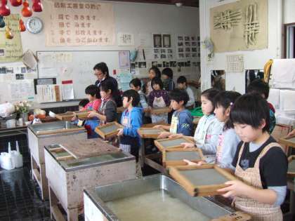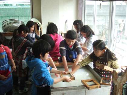 子どもたちは、はがきや和紙がこのような方法で出来ることに驚いていました。