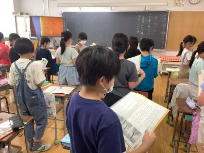 あまんきみこさんの「白いぼうし」を音読で表現していました。