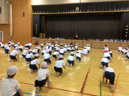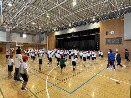 今日は3クラス合同で体育学習発表会の練習を行いました。