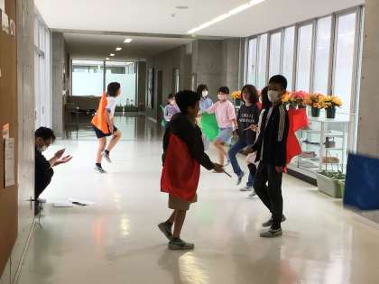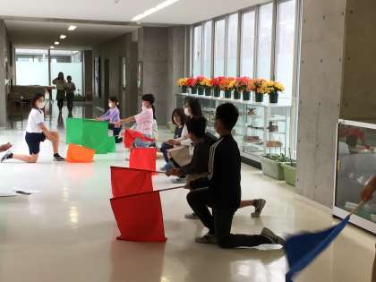 中休み、昼休みを使って、フラッグ運動の動きの精度を高めています。