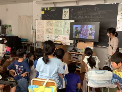 「魔笛」よりパパゲーノとパパゲーナのリズムや声の感じ、音の高さの違いを聞き取りました。映像も交えながら、二重唱を味わいました。