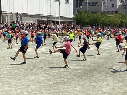 それぞれのグループで考えたグループパフォーマンスとポーズはオリジナリティーがあり、カッコよかった3年生の踊り。みんなで心を一つにして、最後まで踊り切りました。竹の音も揃っていて、素敵でした。